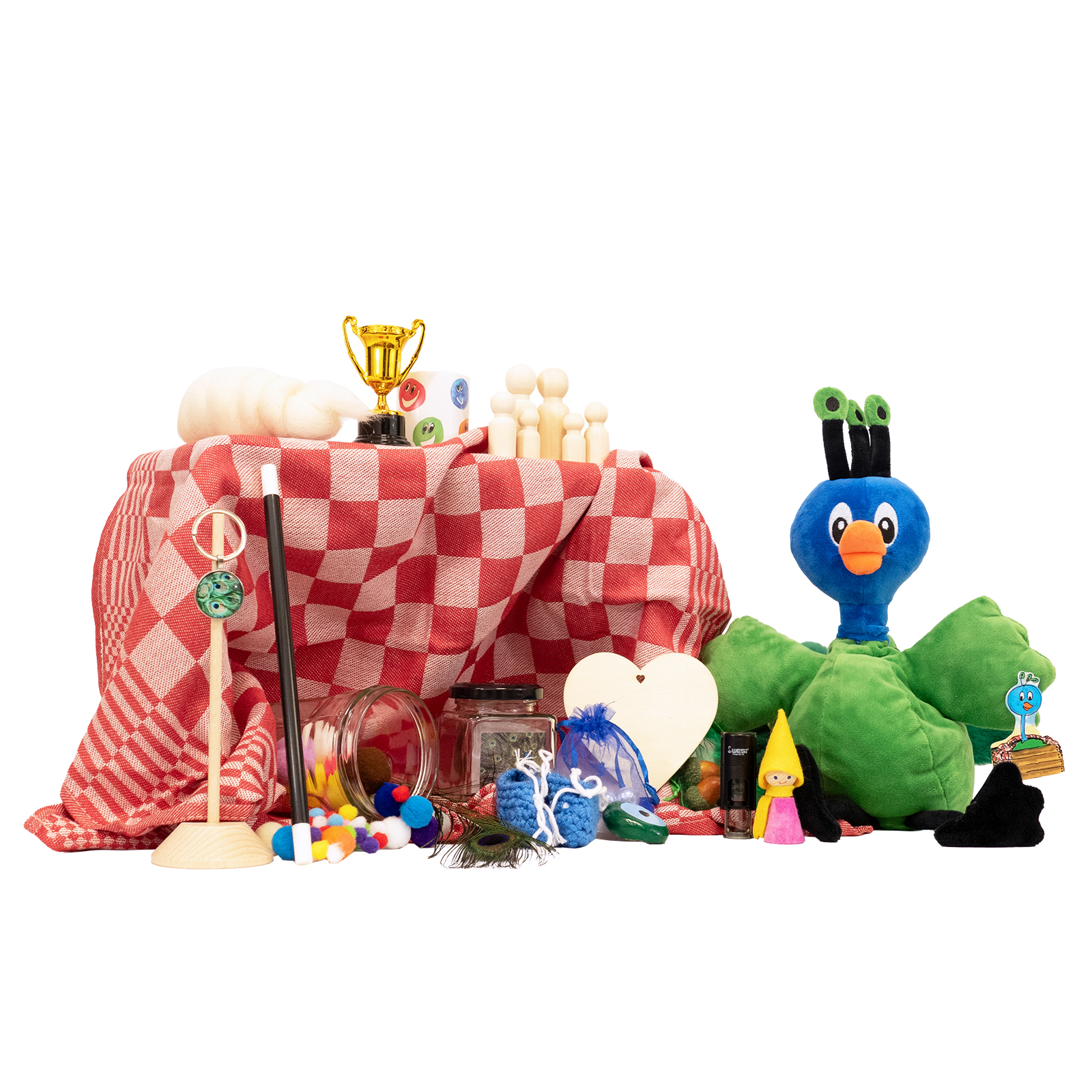 • A Peacock Rik hand puppet
